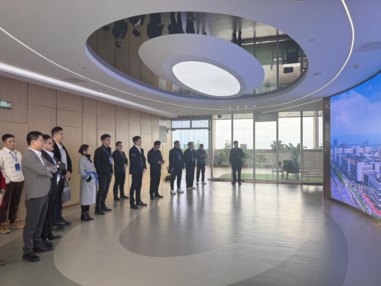 12月25日,研修班在肇庆市广东省(肇庆)大型产业集聚区莲富产业园举行交流座谈会。肇庆市投资促进局党组副书记、副局长、粤桂合作特别试验区(肇庆)管委会副主任温振雄介绍了肇庆市在大湾区中的区位优势、产业布局与发展机遇。他强调,作为粤港澳大湾区向西拓展的重要门户和产业承载地,肇庆正聚焦新能源汽车、电子信息等战略性产业集群,全力推进大型产业集聚区建设,加快构建现代化产业体系。他表示,期待未来进一步畅通政府、高校与企业之间的对接渠道,推动更多创新项目和产业资源与肇庆发展实际深度融合,共同助力大湾区西翼高质量发展。