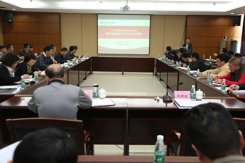 12月14日,学校党委书记成洪波主持召开今年第八次党建工作例会,领学全国高校思想政治工作会议精神,部署近期党建工作。校党委副书记吕琦元及党办、组织部、宣传部、纪委等党务工作部门负责人,各学院党总支书记、全校各支部书记等参加了会议。会上,成洪波就全国高校思想政治工作会议的主要精神进行领学,深刻阐明习近平总书记在本次会议讲话的重大意义。成洪波指出,高校思想政治工作关系高校培养什么样的人、如何培养人以及为谁培养人这个根本问题。他强调要坚持把立德树人作为中心环节,把思想政治工作贯穿教育教学全过程,实现全