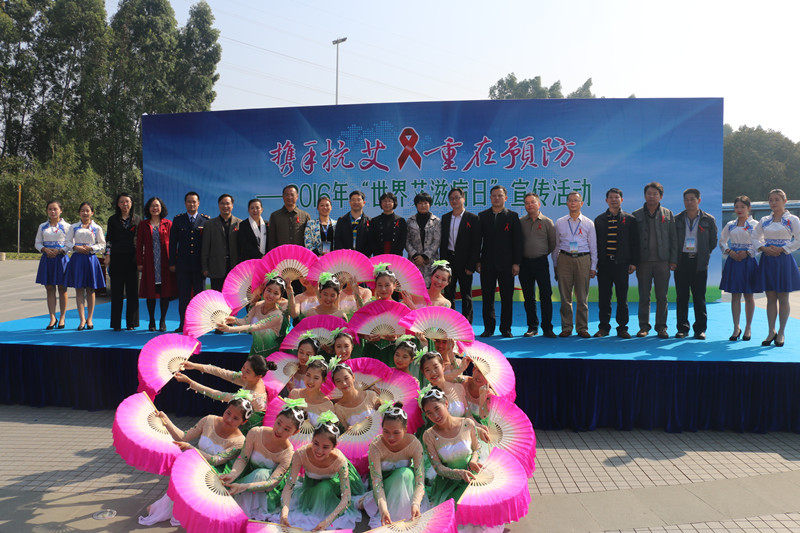12月1日是第29个“世界艾滋病日”。当天,松山湖(生态园)艾滋病防治领导小组在松山湖万科生活广场举办2016年“世界艾滋病日”宣传活动,我校后勤集团参与协办本次宣传活动。松山湖(生态园)管委会委员兼艾滋病防治领导小组组长杨朝琴、松山湖(生态园)卫生计生局局长兼艾滋病防治小组副组长徐淑清、市卫生计生局副局长兼市人民政府防治艾滋病工作委员会办公室主任尹露萍、我校后勤集团总经理张伟林及其它相关部门人员出席了活动。代表我校参加义演的手语表演《和你一样》及现代舞表演《爱的涌动》两个节目,贴合主题、表演精