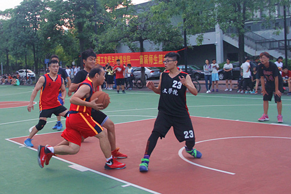 10月13日,为丰富师生课外生活,文学与传媒学院首届师生篮球赛开赛。赛前,学生队员表示对此次师生赛十分期待,并早早到场热身。比赛一开始,现场的气氛便急剧攀升。学生队员冲劲十足,率先出击占上风,教师队员也不甘落后,紧随其上。一旁观众呐喊助威的呼声此起彼伏,热闹纷呈。教师队员与学生队员势均力敌,难分高下。在学生队员猛烈攻势下,上半场结束时学生队员以微弱的优势险胜教师队员。中场休息时间,“趣味篮球”与女篮三对三比赛,活跃了紧张的气氛,也加深同学间的友谊。短暂歇息后,比赛再次激烈上演。学生队员虽然略微领