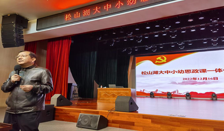 为总结大中小学幼思政课一体化建设经验,加强院校之间一体化建设方面的交流沟通、进一步深化院校在一体化建设领域的合作,12月16日,在松山湖教育党委的大力支持下,由东莞理工学院马克思主义学院主办、松山湖园区科教局承办的东莞理工学院--松山湖园区大中小幼思政课一体化建设精品课展示会在东莞市青少年活动中心松山湖分中心举行。活动由马院党委书记、执行院长刘健研究员主持,参加人员有马院教师代表、大学生求是之声宣讲团成员及园区教育党委委员和中小学幼骨干教师代表。在汇展演示环节,松山湖中心幼儿园园长陈果、中心小学