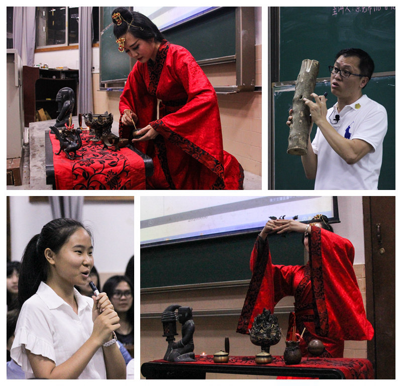 6月6日晚,由东莞市社会科学界联合会主办的“东莞人文学堂”进校园活动之“莞香与东方香都”专题讲座在莞城校区开讲。东莞市莞香专家、市沉香协会会长尹丰田为主讲嘉宾。东莞市社科联副主席龙家玘,市社科联东莞理工学院分会主席、学校办公室主任彭晓波等领导及文学院部分师生参加了讲座。讲座由文学院副院长余意主持。龙家玘在讲座前致辞。他表示,“东莞人文学堂”进校园活动走进东莞理工学院,是我市创新社科普及形式的有益尝试,也是我市加强青少年人文素质教育的重要探索。随后,东莞市沉香协会香道师王婷现场进行了“秦汉添香”香