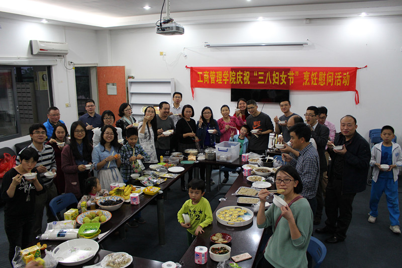 为增强学院凝聚力,活跃学院气氛,促进教工交流,工商管理学院于3月8日举行男士烹饪活动,庆祝“三八妇女节”。学院教工及家属50多人参加了此次活动。为了表达对女同胞的敬意,本次活动菜肴由学院男教工负责烹饪,每一位男教师自备一份菜肴参加活动。男教工发挥个人特长,自备材料,亲自下厨,尽力做好最拿手的菜肴。下午6点,各式色香味俱全的菜肴和糕点集中到经管楼,煞是诱人。大家纷纷拿起手中的餐筷,大快朵颐,欢声笑语不断。此次活动别出心裁,备受欢迎,大家都期待以后多举办这样的集体活动。