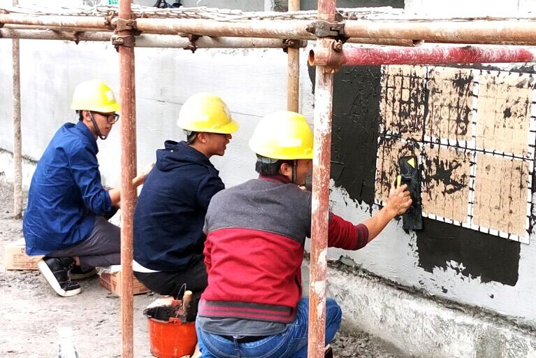 为了解我校松山湖校区新建学生宿舍和饭堂工程进度,确保按时交付使用,东莞市城建工程管理局第三党支部于1月6日在我校松山湖校区新建宿舍和饭堂项目工地举办“比赛出样板、竞赛促进度”贴砖竞赛活动,建筑工程系学生党支部在学校组织部的指导下,组织了11名党员参与体验环节。在“体验环节”,市城建局技术人员和工地工友为师生们教授了贴砖的步骤,讲解了贴砖的技术要领,并指导同学们的完成贴砖操作。通过自己动手,同学们体会到了工程建设的不易,对实践参与兴致浓厚。此次活动为建筑工程系师生提供了一次很好的课外实践机会,让同