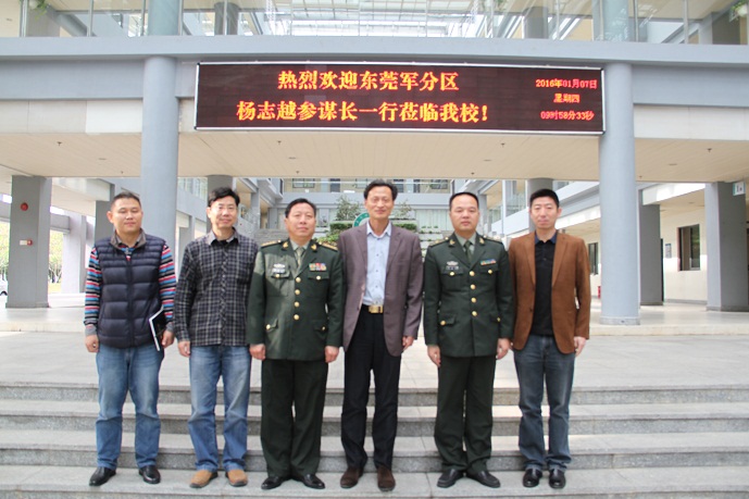1月7日,东莞军分区杨志越参谋长、廖世林参谋一行到我校调研,副校长戴炳源与客人进行座谈。座谈会上,杨志越听取了我校兵役登记站建设、征兵、学生军训、民兵信息分队建设等武装工作情况,并给予了充分肯定。随后,实地考察了我校兵役登记站的建设情况。