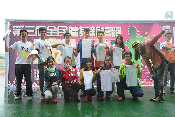 12月27日,由教务处、莞华社区、体育系和文学院主办,文学院人文科学实验班承办的“第三届全民健身新禧跑”活动在我校松山湖校区举行,250多位师生参加活动。当天清晨下起了蒙蒙细雨,但它丝毫没有影响同学们参加活动的热情。歌手协会应邀演唱歌曲为“新禧跑”活动开幕式热场。本次环校跑全长3.7公里。相关负责人介绍,“第三届全民健身新禧跑”一改前两届长跑活动的竞赛形式,采取趣味长跑的形式,避免竞技长跑存在的运动安全隐患,倡导同学们“走出宿舍、快乐运动、健康迎新、积极进取”。活动共设“勇往直前”“情飞松湖”“