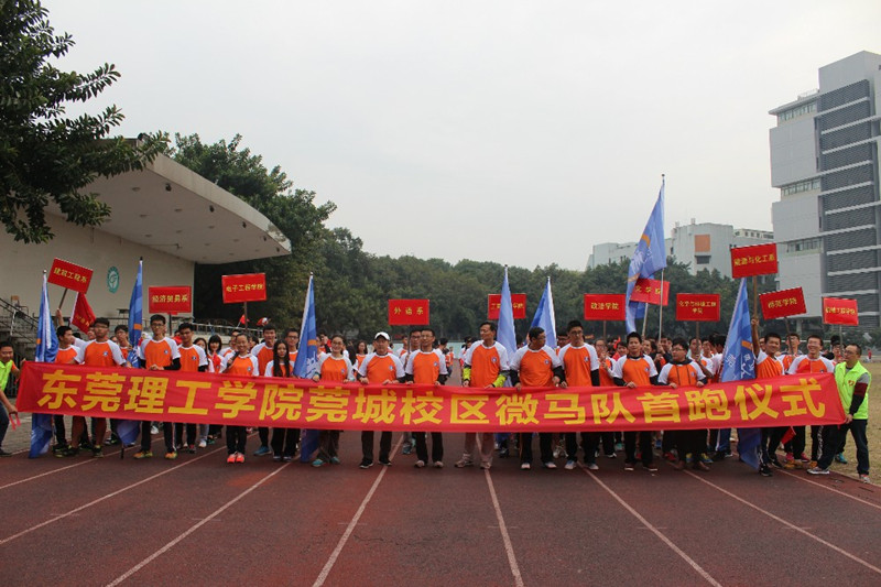 12月20日,由东莞市微马跑步协会主办,经济贸易系和体育系共同承办的东莞理工学院微型马拉松跑步活动在莞城校区举行。我校副校长戴炳源、东莞市微马跑步协会会长李正雪以及经贸系、体育系负责人等参与活动。本次活动以“微马释放:激情、阳光、正能量,让我们一起为健康奔跑”为主题,呼吁参与者们传递快乐,热爱运动。活动主要面向学校教职工和在校学子。路线以田径场为起、终点,环绕东莞理工学院莞城校区外围,总长约5公里。戴炳源希望同学们能在此次活动中释放青春的激情与正能量。李正雪希望通过这样的活动让更多的同学了解微马
