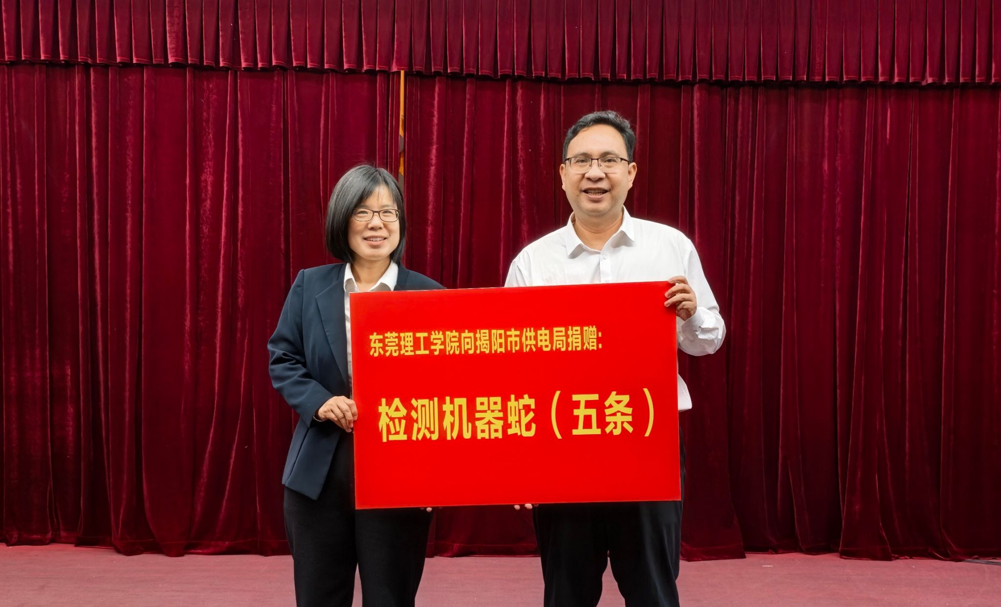 近期,在揭东区召开的“双百行动”校地第三次联席会议上,我校向揭阳市供电局捐赠了一批自主研发的地下检测“机器蛇”,为揭阳电力系统检测工作带来低成本、高安全性的解决方案,为揭阳市电力设施精准检测与高效运维注入创新动能。这也是莞工持续以科技创新服务地方需求,在更广场域应用创新成果的又一重要举措。为了精准对接揭东需求,在莞工“双百行动”专班办和莞工驻揭东区服务队的联动下,我校机械工程学院武静博士率研发团队携“机器蛇”深入揭阳市供电局、揭东区供电局及揭东区农业农村局等单位开展调研交流。在揭阳市供电局技术交