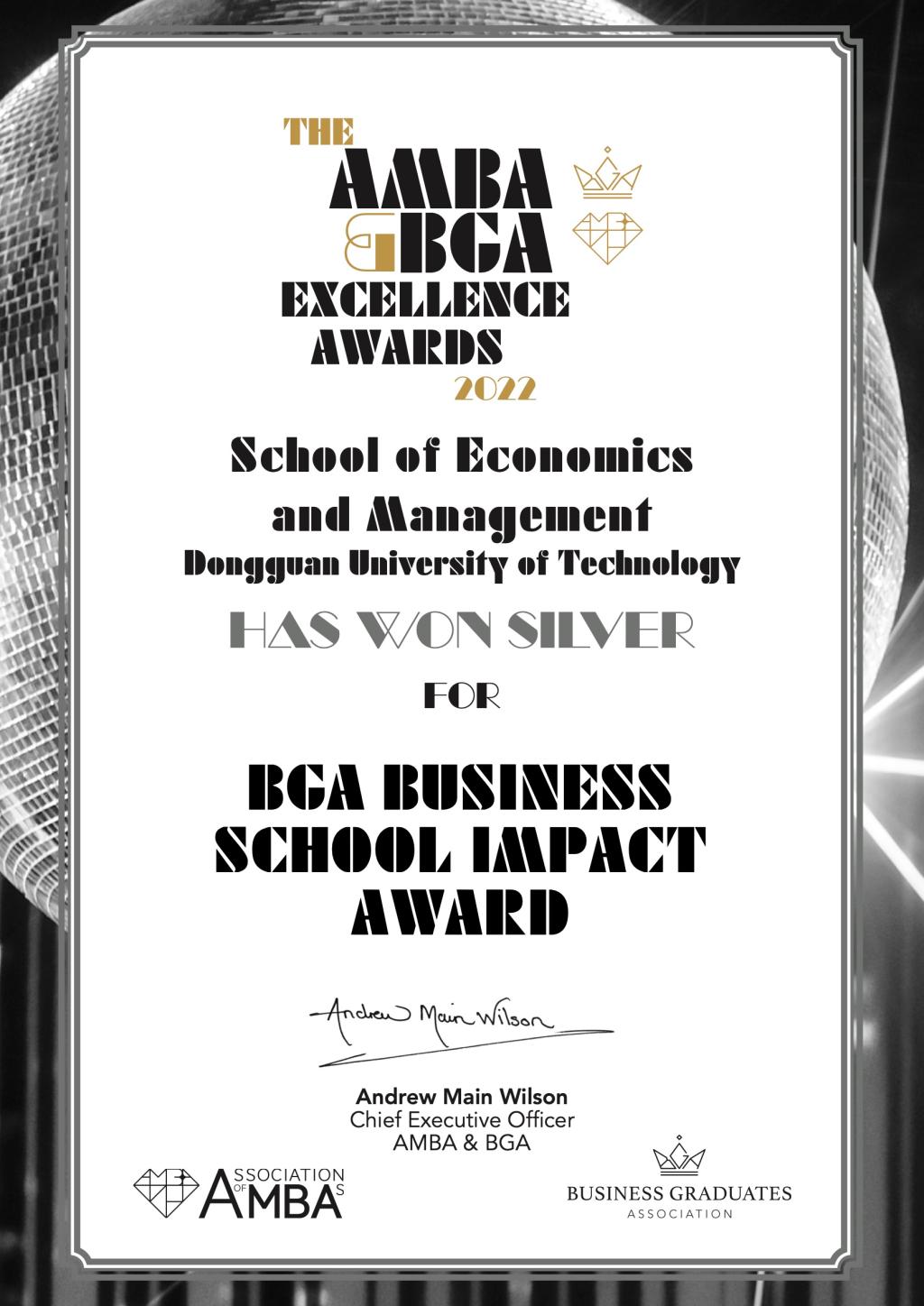 近日,英国工商管理硕士协会与商科毕业生协会(AMBA&BGA)举办2022商学院卓越奖线上颁奖仪式,我校经济与管理学院在BGA商学院影响力奖项的激烈竞争中脱颖而出,喜获银奖。AMBA&BGA卓越奖2022共设12个奖项,全球AMBA&BGA共470余所会员院校参与申报,来自全球的专家对不同奖项的申报材料进行评审。国内AMBA&BGA会员院校积极响应,上海交通大学、中南大学、华中科技大学等11所院校入围,最终5所院校获奖(金奖1个、银奖1个、铜奖3个),我校经济与管