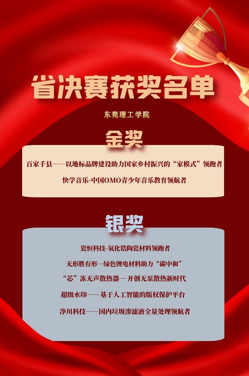 8月11日,第七届中国国际“互联网+”大学生创新创业大赛省广东省分决赛(以下简称“省决赛")圆满落下帷幕。莞工学子在比赛中奋勇争先,斩获双金五银,金银奖数量再创新高。其中《快学音乐——中国OMO青少年音乐教育领航者》《百家千县——以地标品牌建设助理国家乡村振兴的“家模式”领跑者》分别荣获高教主赛道和“青年红色筑梦之旅”赛道金奖。据了解,今年省赛的影响力更大、覆盖面更广,各项数据均创历史新高。全省参赛报名项目数达25.09万个,参赛学生人数超102万人次,最终有300个项目角逐省级决赛,其中高教主