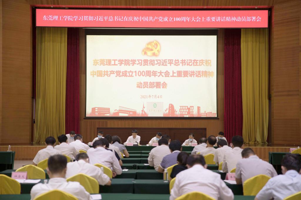 7月4日,学校召开学习贯彻习近平总书记在庆祝中国共产党成立100周年大会上重要讲话精神动员部署会。校领导成洪波、马宏伟、赖日辉、李忠红、杨敏林、李文芳,党政管理机构、群团组织、直属机构党政主要负责人,二级学院党政主要负责人、副书记共70多人参加会议。党委副书记、校长马宏伟主持会议,党委书记成洪波做动员部署讲话。成洪波指出,要深入学习领会习近平总书记重要讲话精神的丰富内涵,切实把思想和行动统一到习近平总书记重要讲话精神上来。要深刻领会习近平总书记在庆祝中国共产党成立100周年大会上重要讲话的重大意