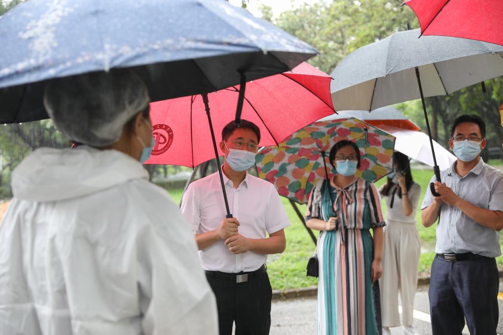 为深入贯彻落实习近平总书记关于安全生产重要指示精神,全力以赴做好校园安全稳定工作,切实保障师生员工生命财产安全,为迎接中国共产党建党100周年营造良好氛围,6月23日,校党委书记成洪波、校长马宏伟、副校长李文芳、杨敏林等校领导对照校园安全稳定工作“十五个严防”措施开展实地检查,并对进一步做好相关工作提出要求。党委办公室、学校办公室、党委学研工部、资产与实验室管理处、安全保卫处、后勤管理办公室等部门负责人参加了此次检查。成洪波走访了学校第一饭堂、学生宿舍区以及校内健康观察点等,对坚守岗位的工作人员