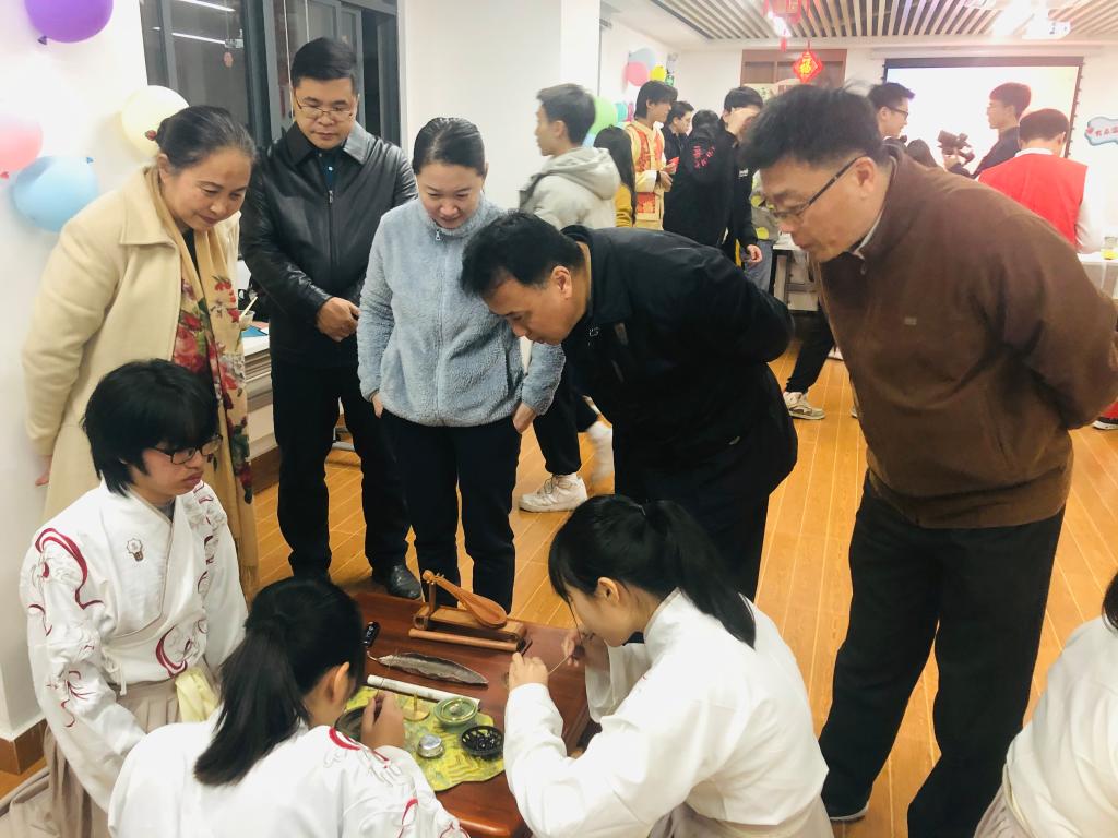 12月21日,莞香文化协会在松山湖校区的温暖冬至活动现场表演理香过程,我校校长、知行学院院长马宏伟,党委宣传部部长、知行学院副院长邹琼,学生社区党工委书记、党委学研工部部长黄金和,知行学院执行院长苏亚玲,粤台产业科技学院院长、知行学院副院长陈伟等观看了理香表演。莞香文化协会在本学期已开展多场莞香文化传承活动,在校内举办了两场香道知识体验小课堂;开设两场线下莞香知行讲堂,参与学生达829人次。首届东莞市莞香文化研究会会长刘建中教授、省级非遗传承人汤锦华老师、君临沉香创始人、中国管理科学院香文化研究