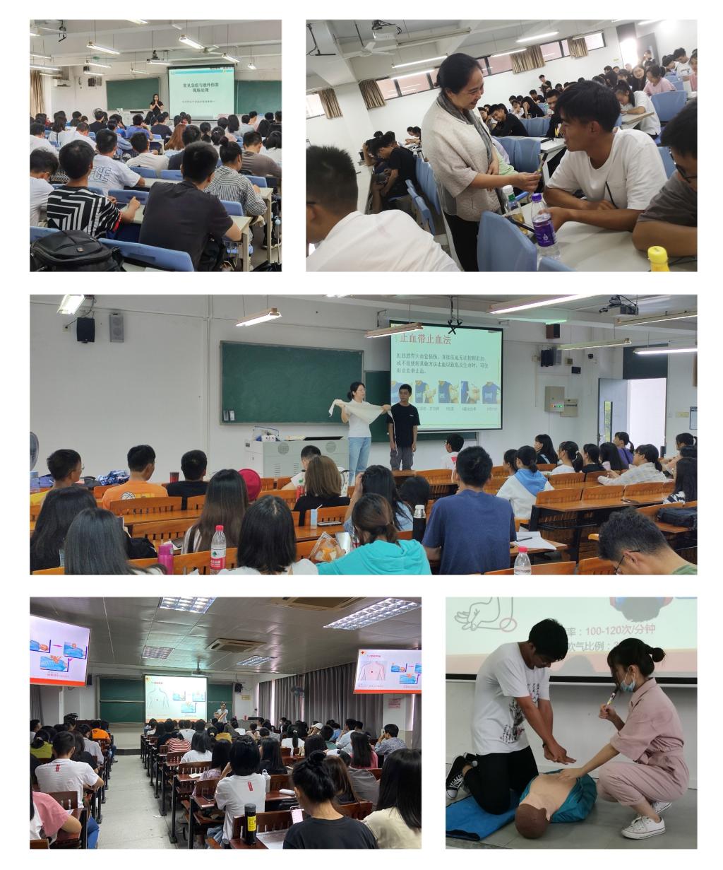 10月17日,《应急救护培训》知行课程在两校区正式开课,第一批近900名学生参与了学习,接下来,2020级5000多名学生将在本学年内完成该课程的学习及实训。《应急救护培训》是通过理论讲解、示范教学与实操训练相结合的方式,为同学们普及应急救护相关知识,教会同学们掌握应急救护的基本技能。上课过程中,同学们认真听讲、积极参与,课堂氛围良好,学生反响热烈,机械工程学院石同学表示,以前对应急救护没什么概念,经过今天的学习,发觉应急救护无处不在,学到的知识很实用,推荐同学们都来学习这门课程;许多高年级学生