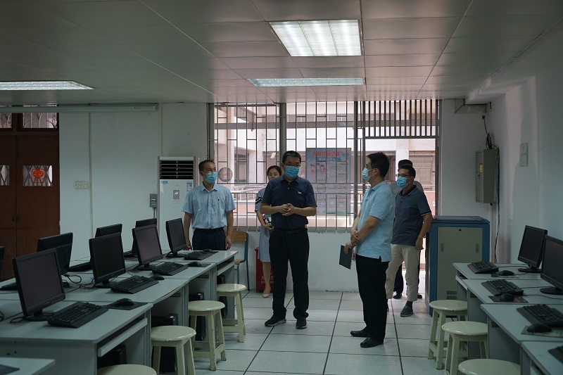 7月15日,莞城校区组织召开2020年第三次安全工作联席会议,莞城校区党工委书记、管委会常务副主任刘健,莞城校区党工委常务副书记潘荣新,管委会副主任彭日新,资产与实验室管理处副处长徐永钊,后勤管理办公室副主任王平,以及资产处、后勤办、网信办、学生社区服务中心、经管学院、法社学院、中法学院、国际学院、粤台学院、继教学院、莞城校区管委会综合办、安全办相关人员参加。与会部门汇报了近期安全工作情况、需要协同处理解决的问题、假期工作安排等。会议结束后,刘健带队对校园教学楼、机房、实验室、食堂、学生宿舍、施