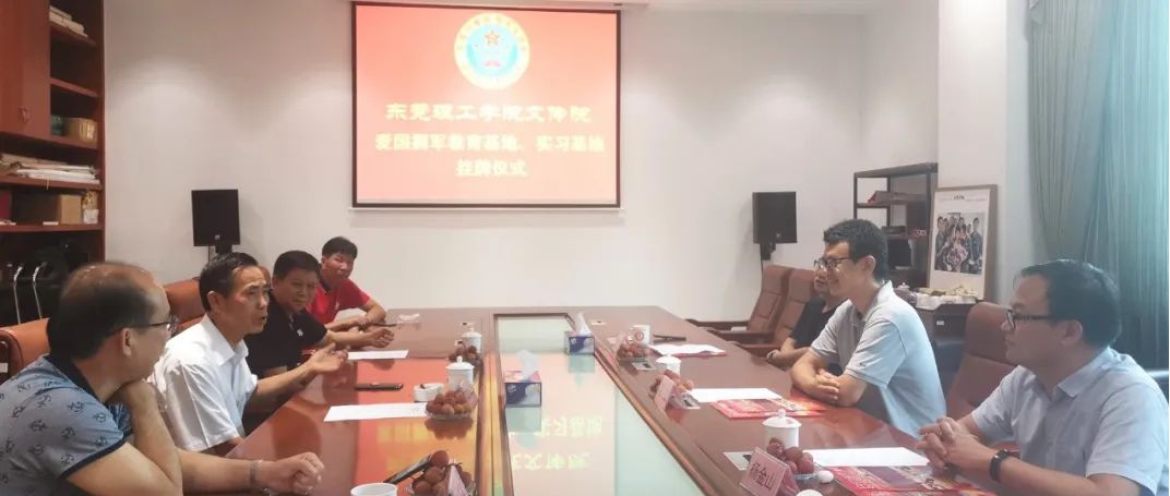 6月15日,由文学与传媒学院与东莞市爱国拥军促进会共同建立、我校首个以“爱国拥军”为主题的教育基地和实习创作基地正式成立,文传学院党委书记阎江、东莞市爱国拥军促进会会长、市工商联主席莫浩棠等领导参加了揭牌仪式。东莞市爱国拥军促进会是由热心爱国拥军事业的单位和个人组成的非营利性社会团体,成立以来始终坚守“听党话、跟党走”的政治站位,凝聚退伍老兵、发动社会力量,开展各种形式的拥军优属工作,受到中央军委、省、市各级党委政府的高度肯定,被誉为爱国拥军的“东莞模式”。在开展双拥工作的同时,他们一直把“红色