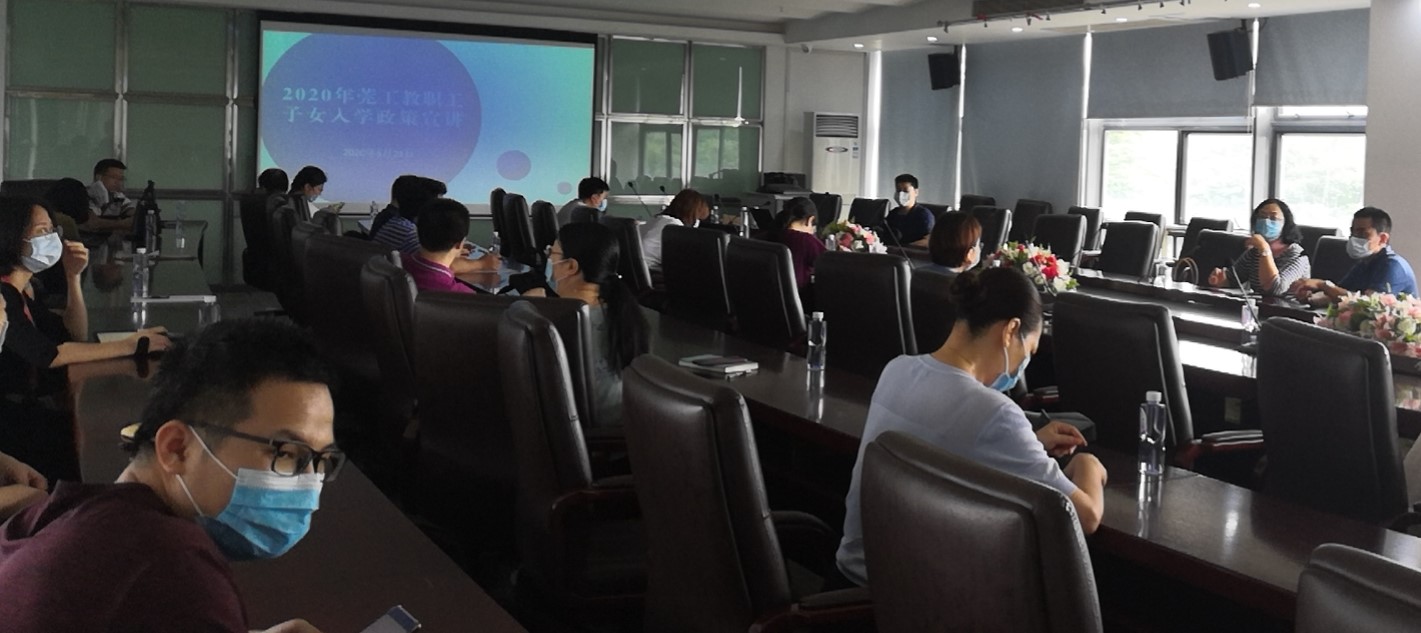 5月21日,校工会开展教职员工子女入学政策宣讲会,由于防疫要求不能聚众,为方便不能到现场参会的教职员工及时了解相关信息,宣讲会在莞工云会议、腾讯会议同步实时直播。约有110名家长通过线上或线下的方式参与了宣讲会并进行了互动交流。宣讲会由工会副主席邹胜美主持。邹胜美向大家简要介绍了松山湖园区今年的最新入学政策,提示各位家长要根据自己的实际情况,提前熟悉政策并做好相关资料准备。工会办公室陈健明对今年的最新入学政策进行了详细解读,重点提示今年报读小学、中学的家长,必须在东莞市入学系统和松山湖入学系统同