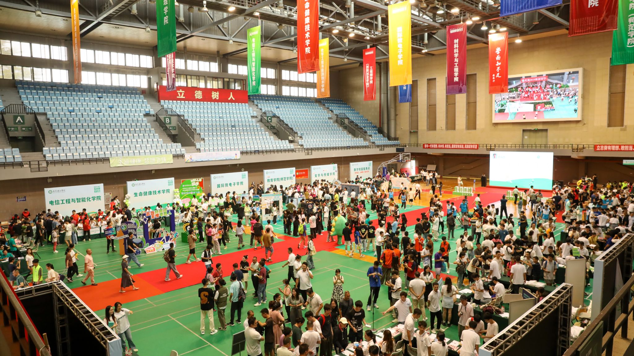 9月5日,来自五湖四海的5600多名莞工萌新正式到校报到。在辅导员、助班、志愿者的帮助下,新生有序顺利完成各项入学手续,开启人生新的篇章。9月5日上午9时,校园里热闹非凡,络绎不绝的车辆从校外驶入,校道上,欢迎标语迎风招展,身穿各色马甲的志愿者们热情指引道路。松山湖校区体育馆内、莞城校区4号楼大厅的学院迎新处,带有学院特色的宣传展板早已备好,尽显心意,各学院师生们笑容灿烂,迎接2023级新生。今年,松山湖校区开放南门、北门、西门,莞城校区开放南门、东门,新生、家长们可以直接开车进校报到,极大地方