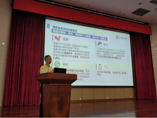 10月29日,学校2020年国家自科、社科基金申报动员及辅导大会在松山湖校区学术会议中心报告厅举行。副校长李忠红、科技处处长范洪波、各二级机构科研院长及百余名学术工作者参会。副校长李忠红指出,国家基金项目是我国在科学研究领域支持基础研究的主渠道,是培育创新的源头。他肯定了我校2019年在国家基金项目申报组织工作中取得的进步,同时通过对标分析省内其他高校,提出三点建议:一是科技处、社科处要统筹谋划,精心组织,强化服务;二是二级学院要充分动员,细致指导,全力支持;三是科研人员要提前准备,重视积累,广