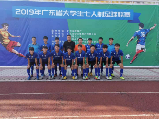 2019年10月16日至20日,我校乙组足球队首次出队参加在广东食品药品职业学院举行的2019年广东省大学生七人制足球联赛,小组赛第一场和第二场分别与广二师和暨南大学战平,第三场1:2不敌广州大学。淘汰赛0:0与肇庆学院战平后点球落败,排名赛与暨南大学再次相遇,最终2:0战胜暨南大学,以3平1胜1负的战绩获得本次赛事全省的第七名。带队负责人表示,虽然我校足球队是首次参加省级比赛,但队员们都发挥出了正常水平,同时也暴露出了队员们经验不足、场上过度紧张等问题。在今后的训练中足球队将继续查漏补缺,努力