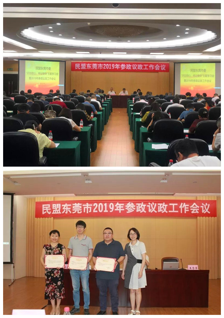 6月29日,民盟东莞市委在市行政办事中心召开“不忘初心、牢记使命”主题学习会暨2019年参政议政工作会议。会议对民盟东莞市委2018-2019年度获奖及获采用提案(建议、信息、材料)的撰稿者进行了表彰。我校盟员程发良撰写的《东莞高层次人才引进的问题与对策建议》代表市盟作为2018暑期座谈会发言材料;袁华强撰写的《促进粤港澳大湾区科技创新与合作》获民盟省委员会采用并作为在省政协十二届二次会议上的大会发言材料;陈佰满、谢世磊、陈莉撰写的《以国际学术会议为交流合作平台推动东莞市高端人才引进与创新产业落