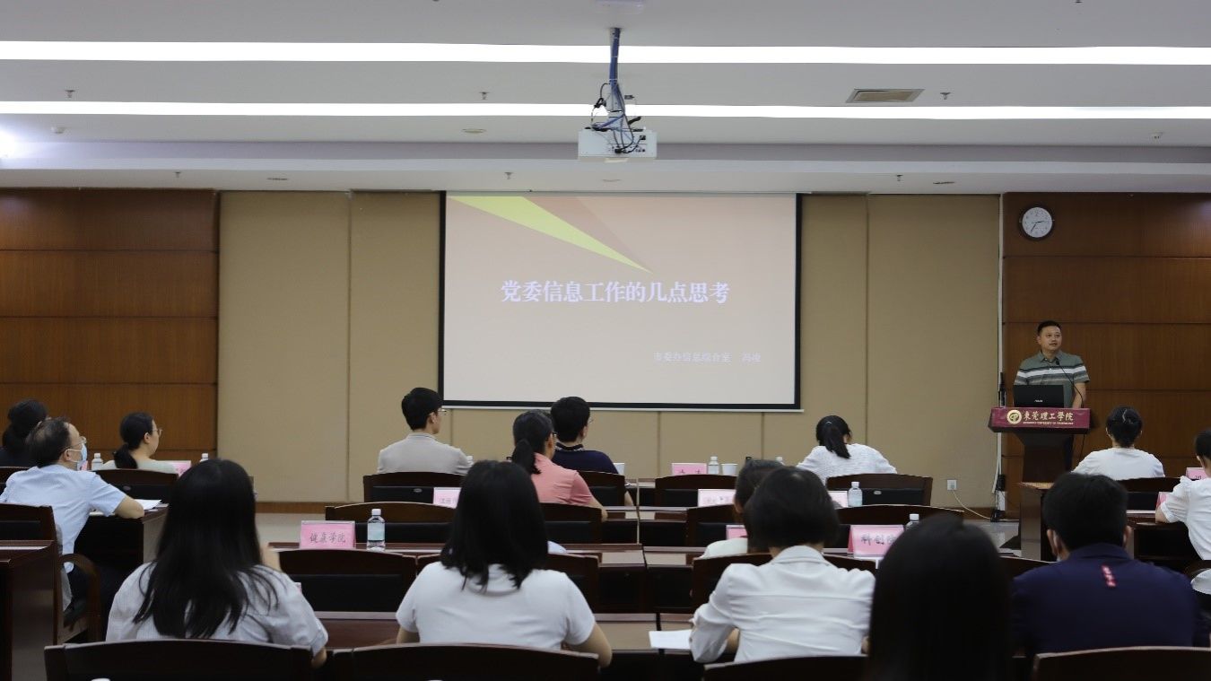 日前,学校举行信息工作培训会暨首批信息特约单位授牌仪式,会议邀请市委办公室信息综合室主任冯凌作专题培训。校党委委员、党政办公室主任胡钦华同志,校内各二级组织机构信息员、党政办公室有关人员和文稿学习小组成员参加会议。会上,冯凌以“党委信息工作的几点思考”为主题,从“信息是什么”“信息工作怎么看”“信息工作怎么做”等三个方面,结合“贵耳重目”“草船借箭”“知己知彼”“以小见大”“警惕‘风险’”“流量密码”六个关键词,通过大量实战案例向参会人员分享了如何精准有效做好信息工作。会上还对组织统战部、发展规