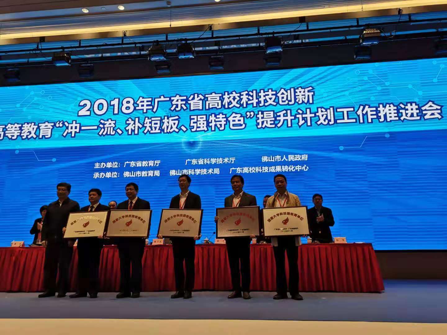 11月24日,在广东省高校科技创新暨高等教育“冲一流、补短板、强特色”提升计划工作推进会上,学校校长李琳代表学校领取了“国家大学科技园培育单位”的牌匾,标志着我校大学科技园的建设迈入新阶段。自学校开展高水平理工科大学建设以来,大学科技园的建设就列为学校高建工作的重要任务之一。在学校领导高度重视和学校各部门的大力支持下,大学科技园的管理运营团队克服重重困难,获得了长足的发展。经过两年多的努力,大学科技园建成了以松山湖大学创新城D2栋为主园区,分布在东莞镇区的四个分园为支撑,全面服务于学校科技创新、