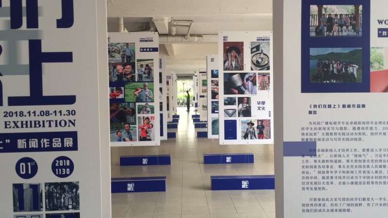 11月8日,文学与传媒学院在学生社区7栋楼下举行“我们在路上”新闻作品展。本次新闻作品展以“多彩乡村情系故里”主题教育实践活动契机,对卓越新闻班暑期新闻采访与写作实践训练营的优秀新闻作品进行了展出。卓越新闻班的同学深入农村、深入田间地头,深入百姓中间,寻找并记录下贵州省盘州市在精准扶贫政策的有力影响下,乡村的风土人情、美丽风貌、经济发展巨大变革,直面存在的问题,思考发展契机。通过展出的作品,参观者可以看到贵州优美的自然风光、传统服饰、民俗风情,也能从展出中感受到当地淳朴的民风、传统艺人的坚守与执