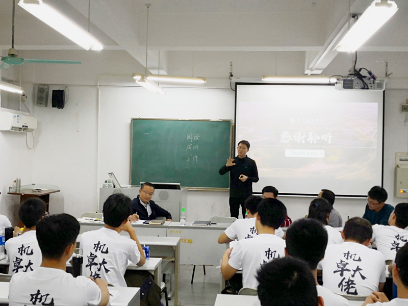 10月18日晚,校党委书记成洪波参加了所联系的2018级机械设计制造及其自动化专业卓越工程师计划班1班的主题班会。本次班会主要是贯彻落实《关于组织开展〈东莞理工学院争创一流本科教育2025行动计划〉意见征求等相关工作的通知》的文件精神。班会在全体师生合唱的班歌《奔跑》中拉开序幕。会上,班委成员针对开学近一个多月内的班级情况进行了总结,要求大家严于律己,养成良好的生活和学习习惯。班主任朱建军就《2025行动计划》(征求意见稿)进行了宣讲。行动计划的写作组成员、发展规划处胡文龙副研究员向同学们详细介