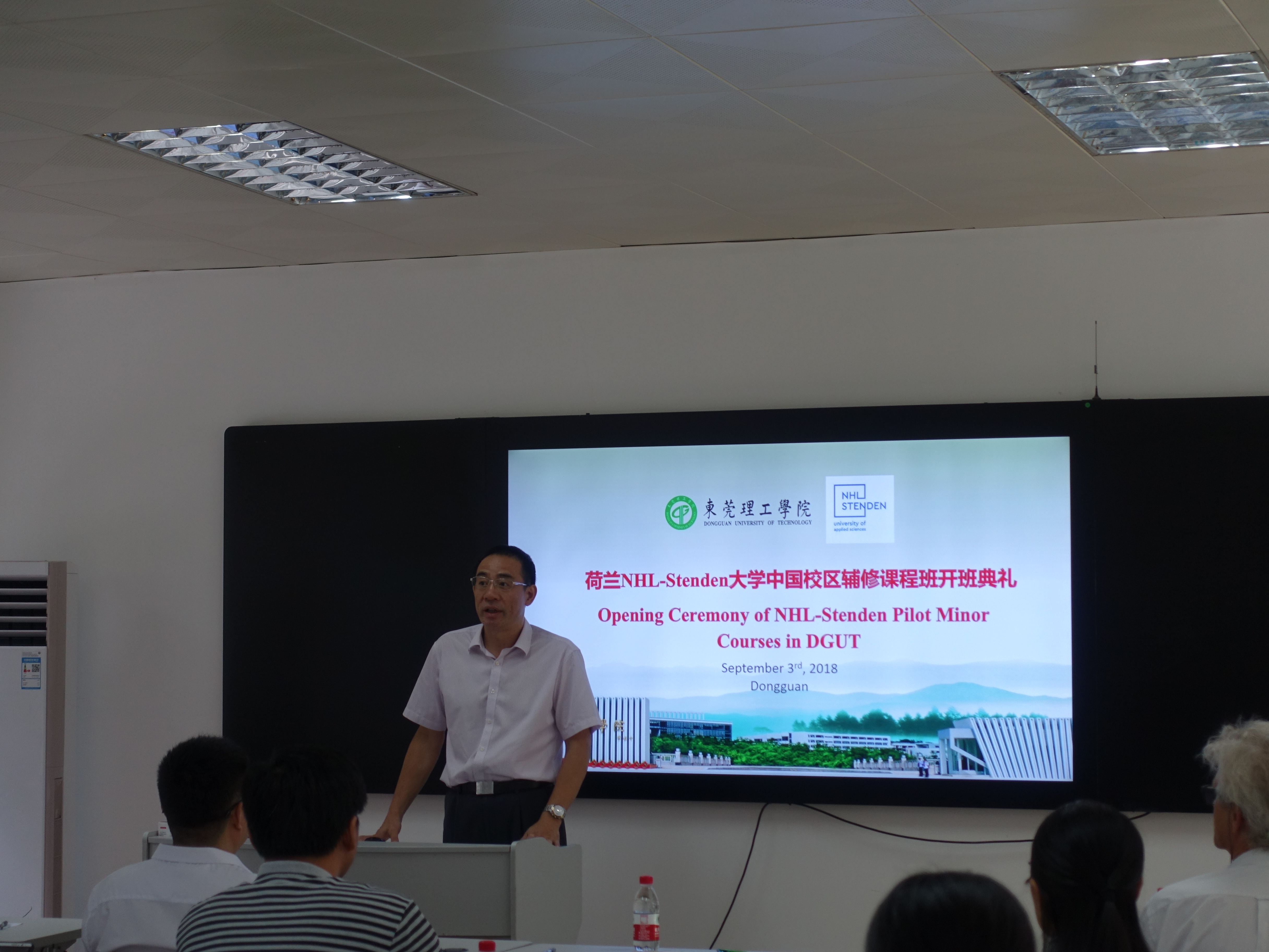 9月5日,东莞理工学院2018级新生开学典礼在松山湖校区体育馆隆重举行。国旗护卫队踏着整齐有序的步伐进入会场,庄严的升国旗仪式拉开了开学典礼的序幕。中国科学院院士、我校双聘院士王立军教授,法国国立工艺学院校长法鸿教授,校领导成洪波、李琳、李忠红、杨敏林、马宏伟、李文芳,各二级组织机构负责人、教师代表,在校学生代表,家长代表以及4614名新生等出席典礼。党委副书记吕琦元主持开学典礼。典礼上,中国科学院院士、诺贝尔物理学奖获得者、我校名誉校长杨振宁先生通过视频为新生送上了祝福。他以自己在西南联大学习