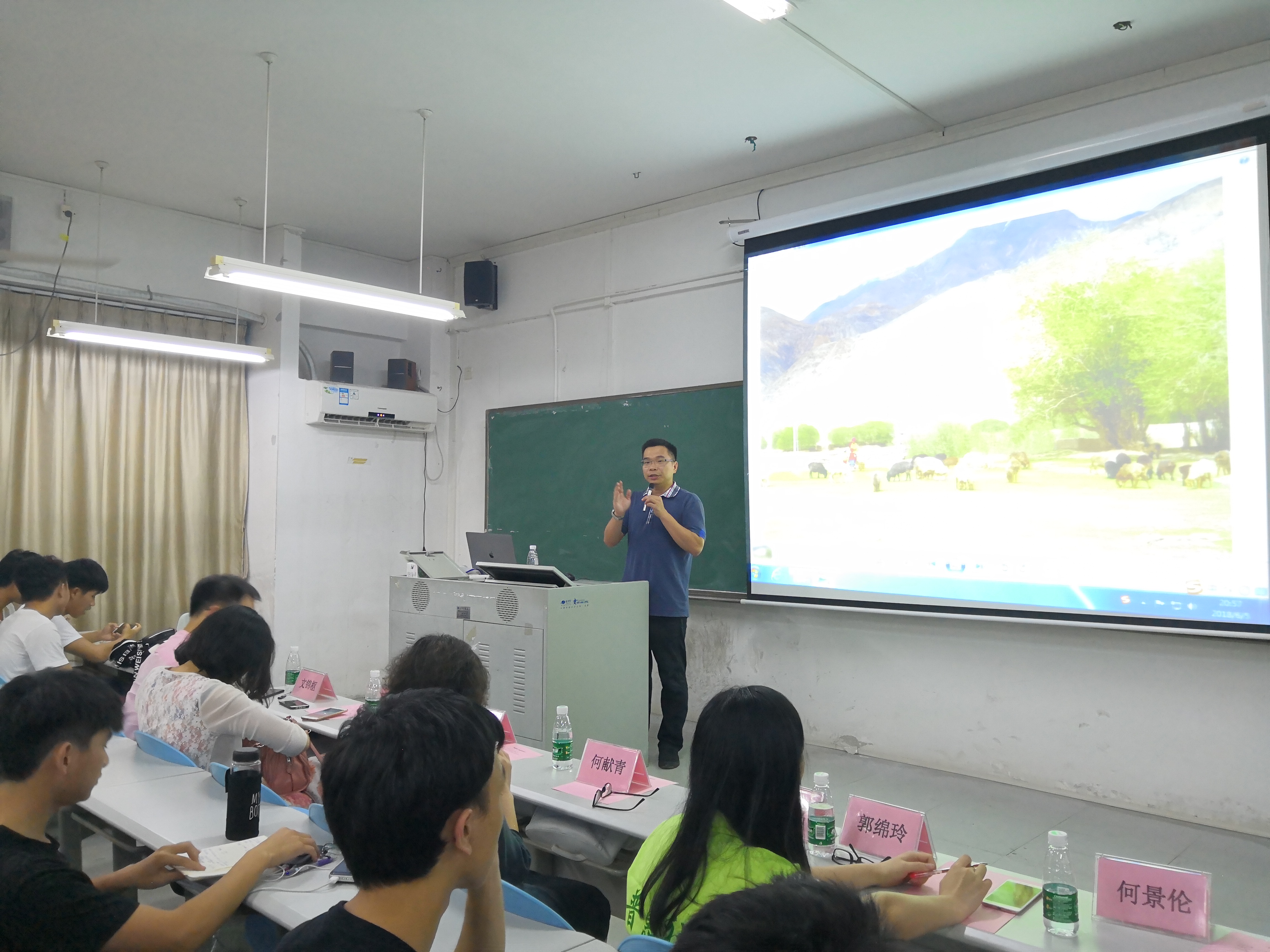 6月5日晚,莞逸社区通过双工联动,在东莞理工学院松山湖校区教学楼举办了“南疆风物”摄影讲座。本次讲座邀请了东莞第七高级中学办公室主任、东莞市摄影家协会会员钟钧锷老师为学生们展现新疆风采。我校党委宣传部部长、莞逸分院院长何献青,机械工程学院党委副书记、莞逸分院副院长陈举铭,生态环境与建筑工程学院党委副书记、莞逸社区副院长袁荫贞等与130多名学生参加了本次讲座。在新疆璀璨星空的照耀下,一幅名为“自行天下”的作品赫然屹立眼前,开启大家踏疆寻景的旅程。通过生动的语言和栩栩如生的摄影作品,嘉宾与学生看到了