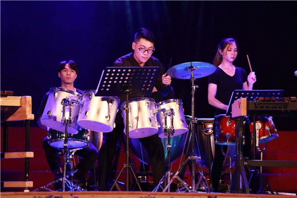 5月10日晚,教育学院(师范学院)2018届音乐学专业毕业音乐会在大礼堂隆重举行。校党委副书记吕琦元、东莞市音乐家协会松山湖分会主席周彦冰、教育学院(师范学院)院长赵全、党总支书记杨万江、副院长琚丹红、党总支副书记黄艺琦、音乐系主任黄琼及辅导员等参加晚会。在音乐会上,一曲民乐合奏《梦回西游》拉开了音乐会的帷幕,随后,教育学院(师范学院)2018届音乐学专业的同学们表演了打击乐合奏《Jostoju》、古筝联奏《西域随想》、弦乐重奏《风の谷》、管乐合奏《名侦探柯南》插曲、打击乐合奏《西域驼铃》等器乐