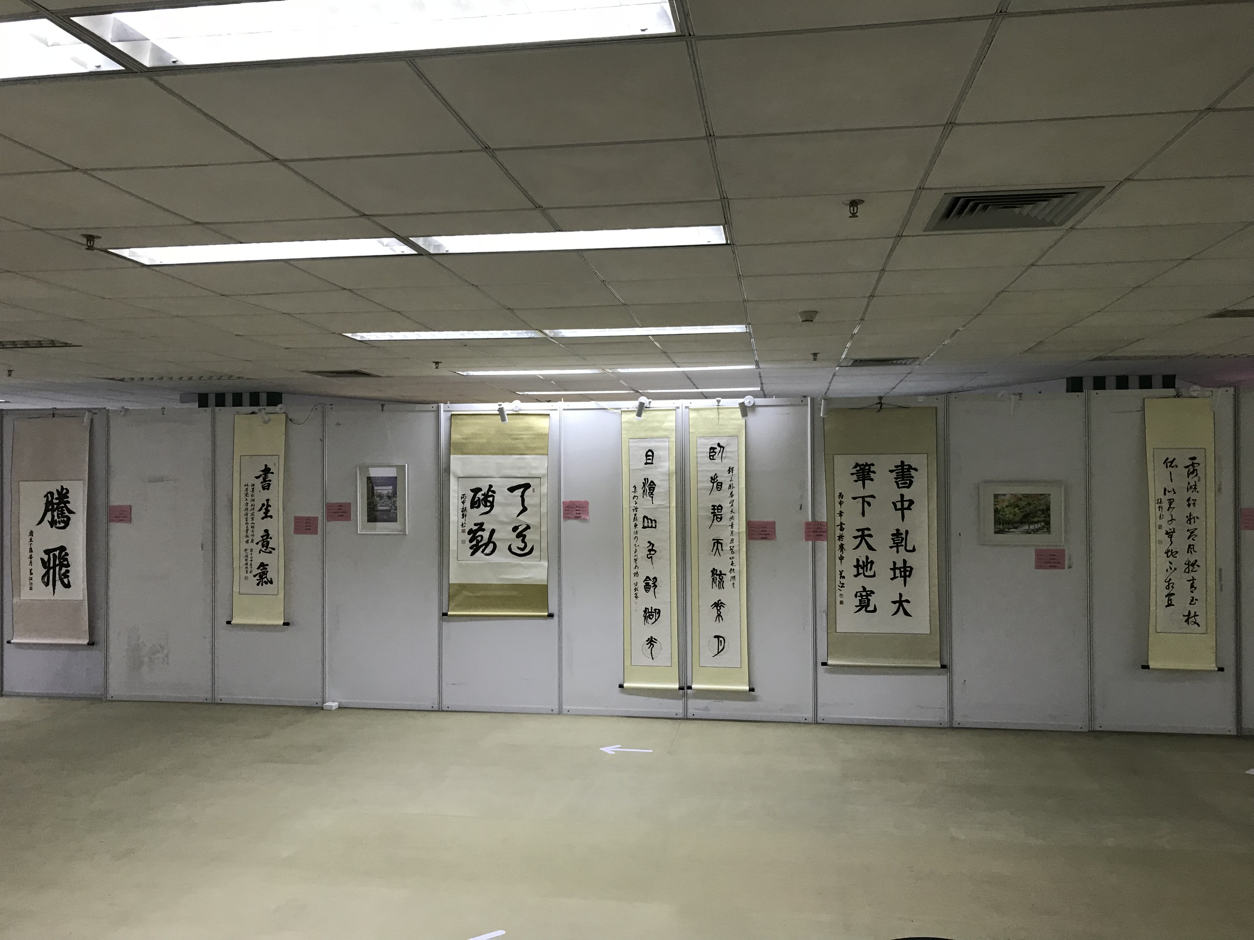 为迎接我校本科教学工作审核评估,助力我校高水平理工科大学建设,丰富全校师生的校园文化生活,让我校教职工的书画爱好者能够有一个互相切磋交流的平台,提高广大师生的艺术鉴赏能力,弘扬中华传统文化,由我校工会主办、教职工书画协会承办的东莞理工学院教职工“迎评促建”书画作品展览于11月20日在我校图书馆一楼展览厅正式展出。本次教职工书画作品展览,得到了我校领导的高度重视和关心,得到了我校广大书画爱好者的广泛响应。此次展览主要展出了我校教职工书画协会杨万江、杨继龙、李淑怡、李益民、肖炽成、莫振轩、陈礼明等老
