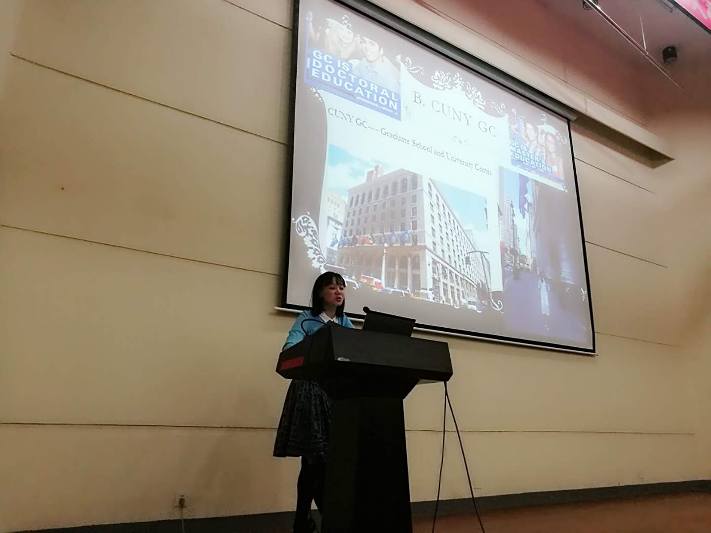11月16日晚,由教师发展中心主办,文学与传媒学院承办的“访问学者成果汇报”在我校松山湖校区图书馆报告厅举行。文学与传媒学院的三位教师分享了他们的访学经历及感受。公外部杨劼主任及多位骨干教师到场聆听鼓励。李伍娟,于2017年2月—2017年8月在美国纽约市立大学研究生院赛加尔戏剧中心访学。她结合自身访学经历强调了教师工作多年后重新回到学校、回到课堂、拜在大师门下、结交具有高度学术水平的同学,对教师拓展眼界提升教学科研能力的重要性。在报告的最后,她谈到此次访学大大地启迪了大学英语教学,并由衷地呼吁