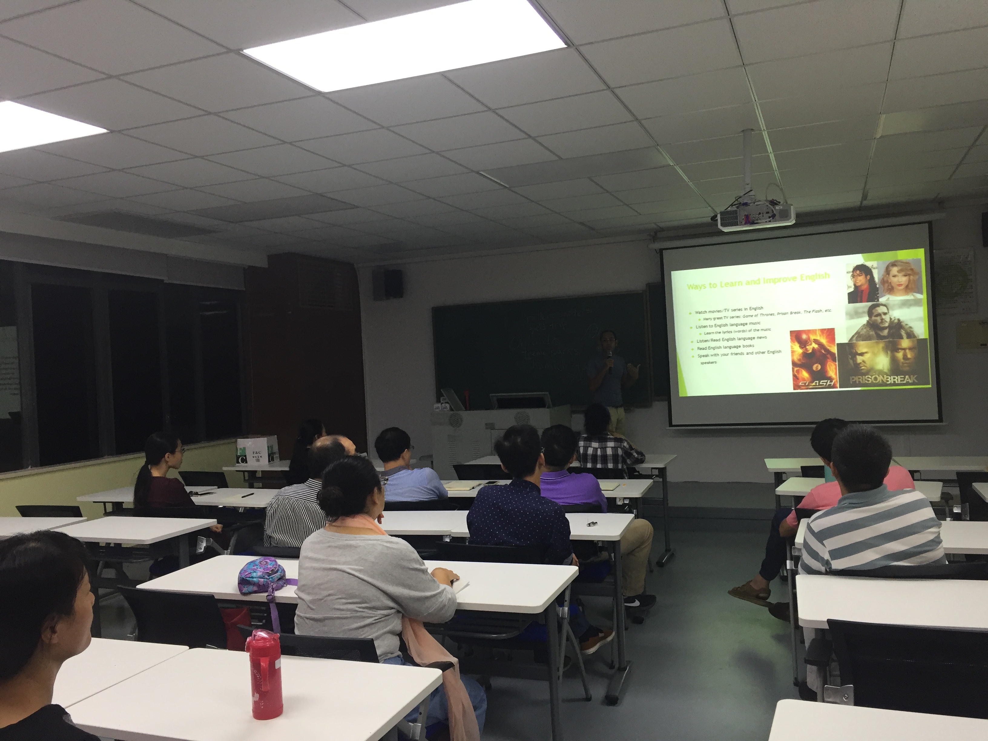 应广大教职工的要求,10月23日我校2017年第三期英语口语培训正式开课。本学期课程由来自美国的教师MichaelJ.Moore(麦克)主讲,面对全校教职工免费开放,定于每周一晚上19:00-20:30准时开课。课程主要围绕英语口语和听力能力的培养设计课程,以提升教师英语口语交际能力为目标,致力于培养教师们自信说英语进而享受说英语。本次课程首次将日常英语口语和出国培训英语结合在一起,原则上自愿参加,但对于申报学校国外访学支持计划的教师要求必须参加并记录出勤率。教师发展中心主任李环为第二期参加出国