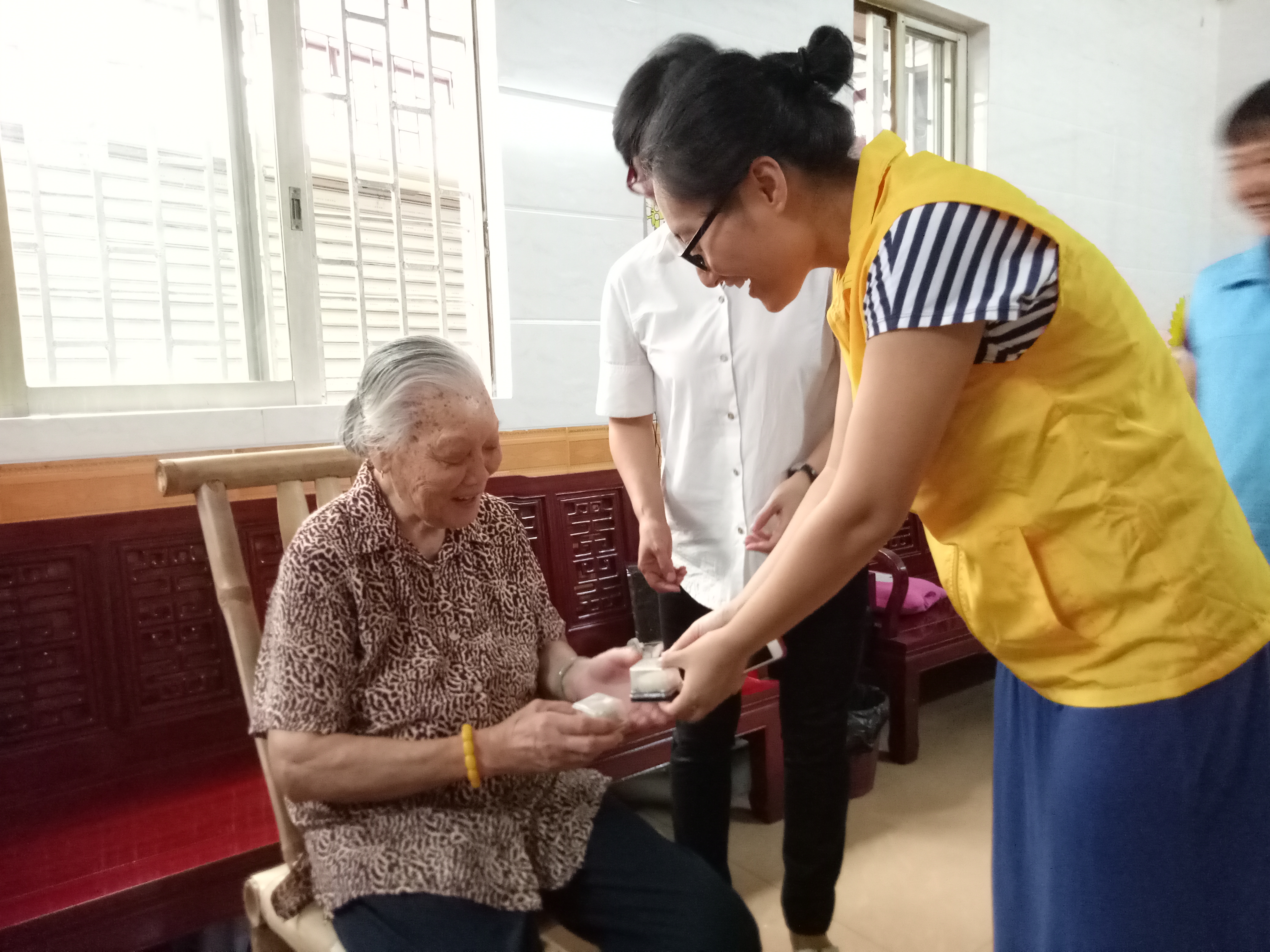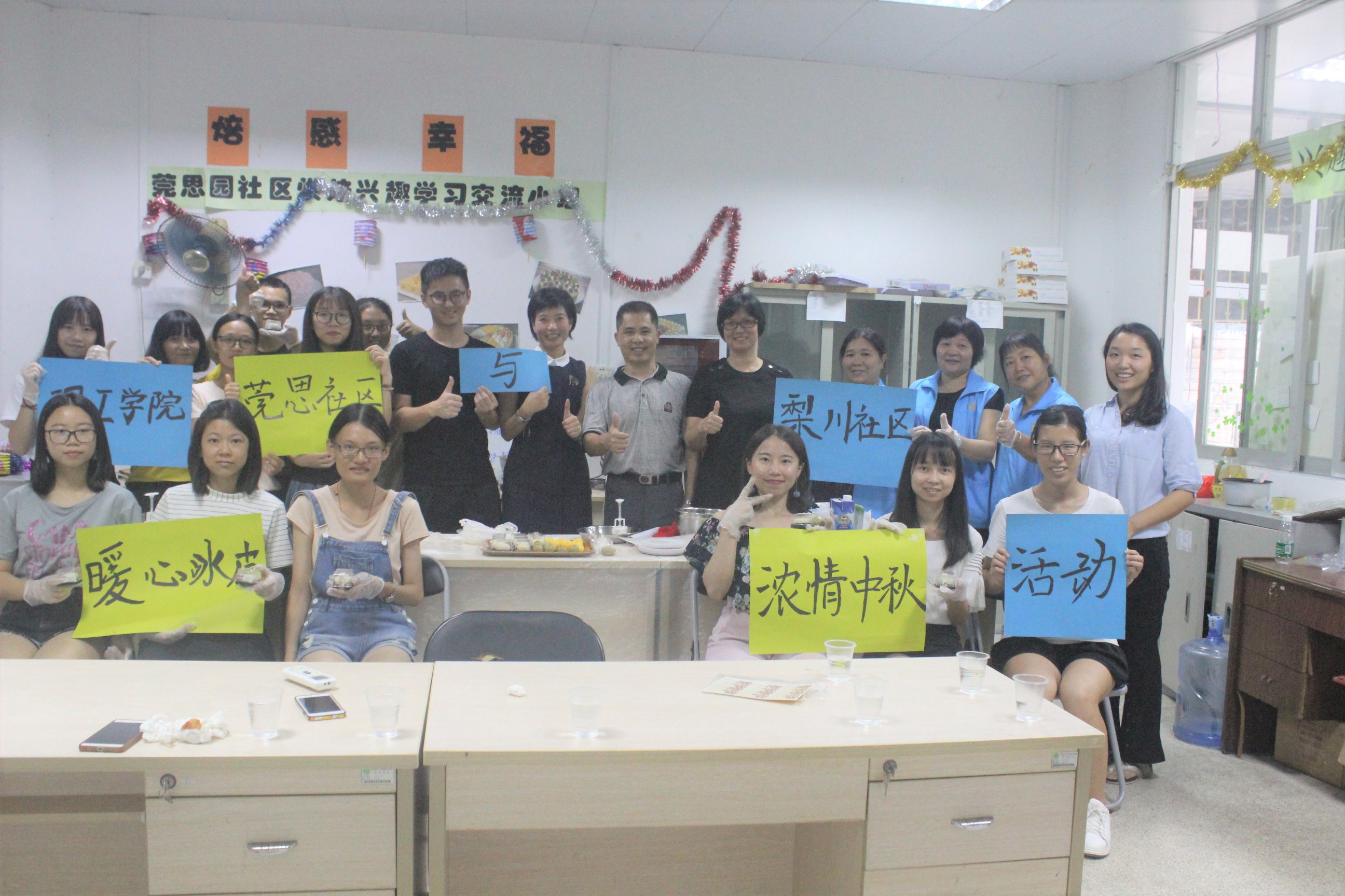 9月30日下午,莞思园社区的同学们在劳丹、吴云开老师的带领下前往莞城梨川社区进行中秋慰问老人活动。在梨川社区叶丽娟主任带领下,莞思园社区的老师、同学们参观了供老人休息娱乐的家庭文化服务中心。同学们前往看望了了三名90岁高龄的老人并送上由莞思园烘焙组同学及梨川社区工作者亲手制作的冰皮月饼。在慰问过程中,老人们都开心地表示,如今过得这么幸福,很珍惜现在的时光。社区指导老师吴云开也表示,此次活动很有意义,看到老人开心的样子,大家心中的幸福感也油然而生。