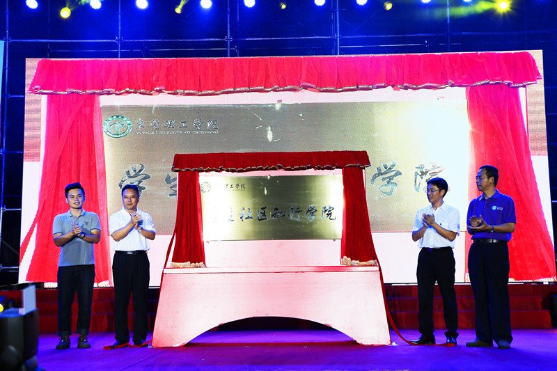 9月21日和22日晚,东莞理工学院学生社区知行学院在“大学豆”的生动介绍下,分别在松山湖校区体育馆、莞城校区大礼堂与大家正式见面!校党委书记成洪波、副校长马宏伟、导师李玉悌和校学生会主席张焯共同为学生社区知行学院揭牌。成洪波为首任知行学院院长、长江学者、副校长马宏伟教授颁发了院长聘书。马宏伟在讲话中以自己成长的亲身经历阐明了大学社区对提升学生综合素养所发挥的重要作用,指出学校成立知行学院,旨在着力构建“全员育人、全方位育人、全过程育人”的综合培养体系,实现服务管理社区化、价值引领生活化、素质养成
