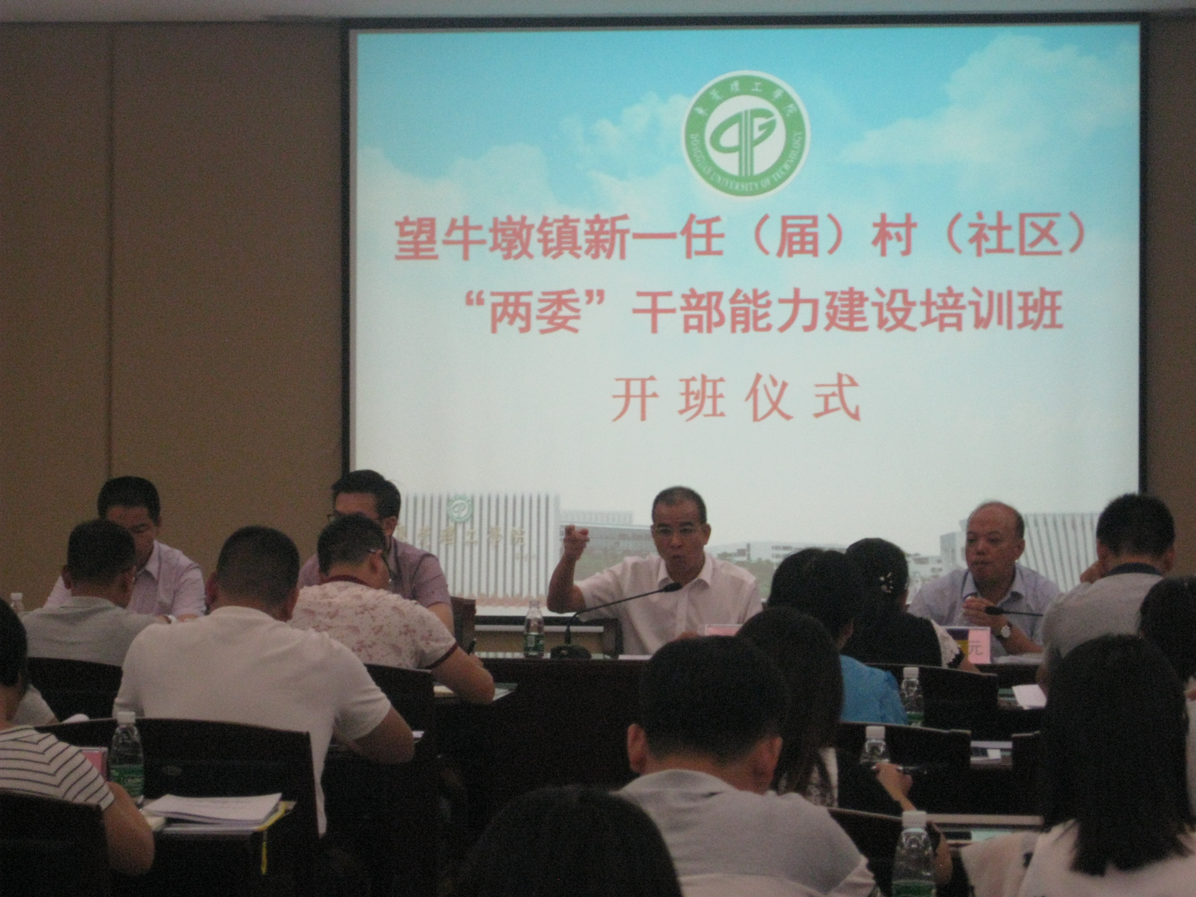 9月11日,我校松山湖校区迎来了52名特殊的“学生”,他们来自望牛墩镇22个村和1个社区,是今年上半年村(社)选举产生的“两委”干部,将在我校松山湖校区进行为期一周的学习提升。我校党委副书记、马克思主义学院院长吕琦元,望牛墩镇党委书记简任昌出席开班仪式。吕琦元对学员表示热烈欢迎,向他们介绍了东莞理工学院的发展历程,重点介绍了学校建设高水平理工科大学的基本情况。他希望各位学员认真学习,多提宝贵意见。简任昌对我校为学员提供的优越学习条件表示感谢。他向学员分析了当前望牛墩镇经济社会发展态势,强调村(社