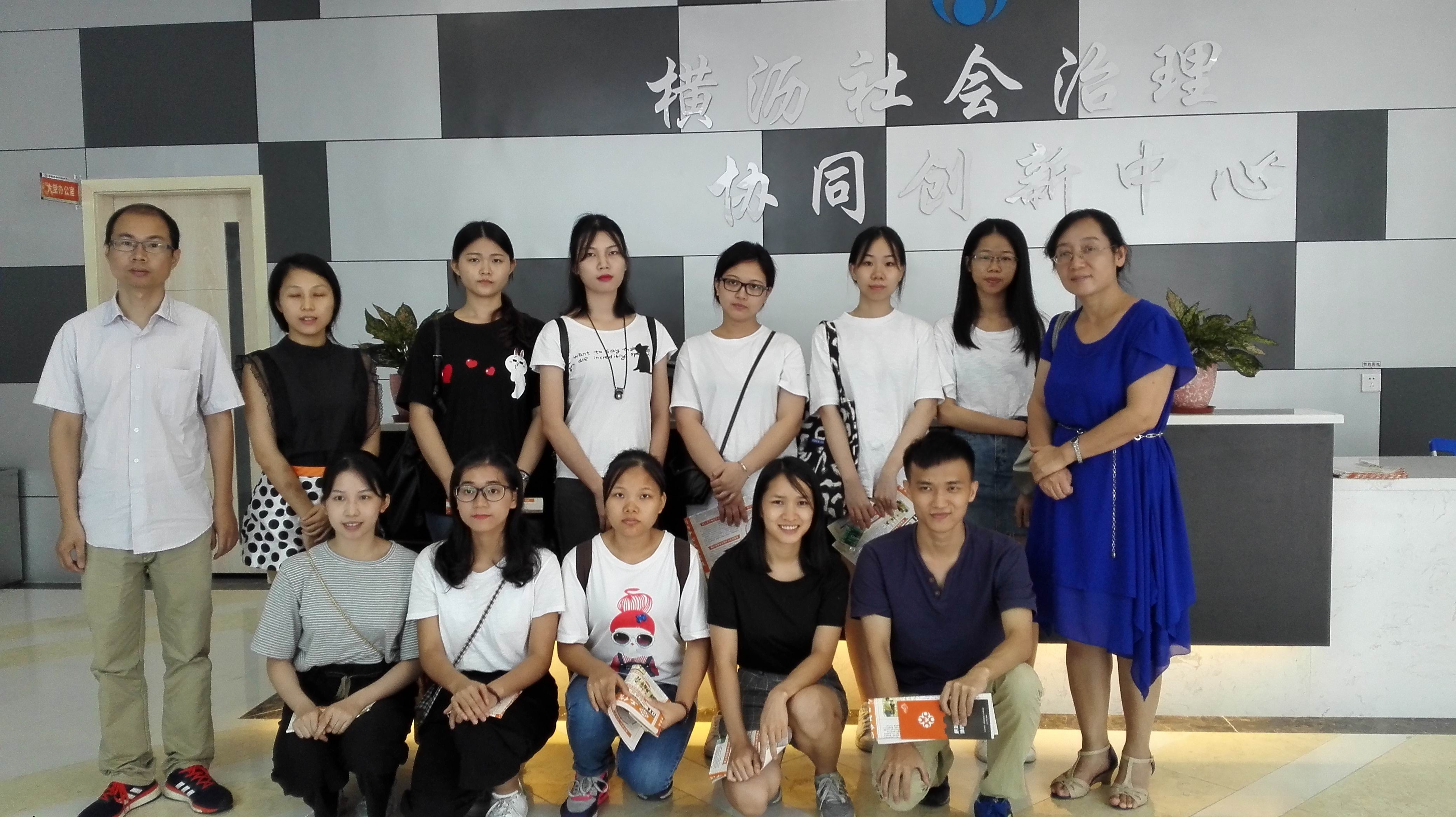 7月12日,法社学院公共管理系2014级行政管理专业7名学生与社会工作系3名学生在朱晓红、陈洪波、李璐璐老师的带领下到横沥镇开展首次暑期集中实习。横沥镇社会工作委员会副主任吴锦成、周堪李主任、横沥社会治理协同创新中心常务副主任潘桂芳等相关人员热情地接待了实习同学并就横沥镇近年来基层社会治理的基本情况、社会治理协同中心的功能作用以及横沥镇瑞康花园样板社区建设情况向同学们做了详细的介绍。在整个暑期实习期间,同学们将在指导老师的带领下在横沥镇社会治理协同创新中心、横沥镇瑞康花园样板社区开展服务项目走访