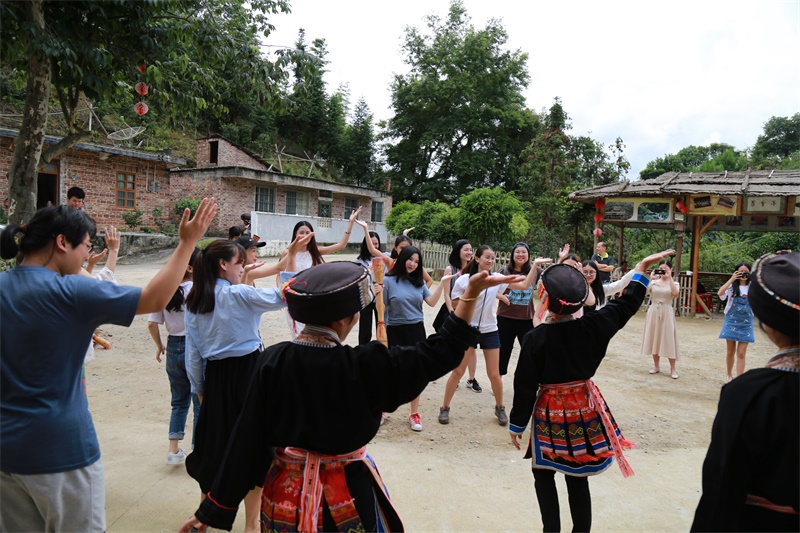 6月17日至19日,教育学院(师范学院)组织2014级音乐教育专业学生赴清远市连山壮族瑶族自治县开展了采风实践活动。6月18日,采风队伍前往吉田镇学习瑶族歌舞。师生们一同参观了瑶家人的百果园、吊脚楼,还观赏了一场瑶族歌舞盛宴。同学们的学习热情极高,当地的瑶民也耐心地手把手教同学们跳长鼓舞,现场气氛热烈、其乐融融。同学们不仅收获了听觉和视觉的文化震撼,同时也领略了少数民族音乐文化的独特魅力。6月19日,师生们来到了连山文化馆,参观了馆内的壮族瑶族的服饰、风俗和文化遗产等,观看了连山壮瑶民歌申报市级