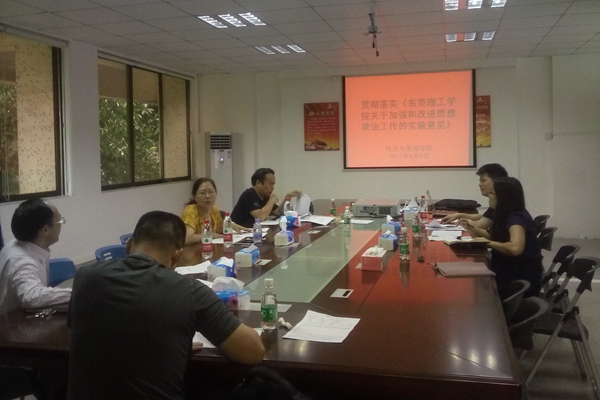 6月8日,经济与管理学院召开党政联席会议,学习贯彻学校思想政治工作会议精神,经管学院院长刘继云、党总支书记杨继学、副院长刘伟、帅建华及相关成员出参加学习。会上,杨继学传达了学校思想政治工作会议的精神,要求党政班子进一步贯彻落实成洪波书记的讲话精神和《东莞理工学院关于加强和改进思想政治工作的实施意见》等文件精神,牢牢把握正确发展方向,全面提高人才培养能力,助推学校高水平理工科大学建设。刘继云分析了经管学院面临的新形势和新任务,要求进一步统一思想认识,明确目标要求,抓好工作落实。会议结合经管学院的实