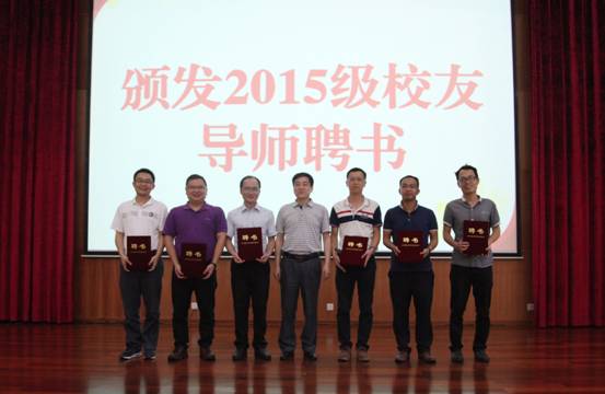 5月25日,机械工程学院于松山湖校区学术会议中心召开机械工程学院校友活动暨校友导师聘任大会,发展与联络办主任崔学海,机械工程学院党总支书记钟守炎,副院长黄辉宇,党总支副书记陈举铭出席会议。会上,钟守炎代表机械工程学院向2015级校友导师颁发校友导师聘书。小小一张聘书承载了学院对校友导师寄予的厚望,表明了学院与校友导师之间互相信任,共同进步的决心。机械工程学院党总支副书记、校友会工作组组长陈举铭作2016年校友导师工作总结并对未来工作做了全面的计划。会上,黄炳尧、林炜生分别代表2014级、2015