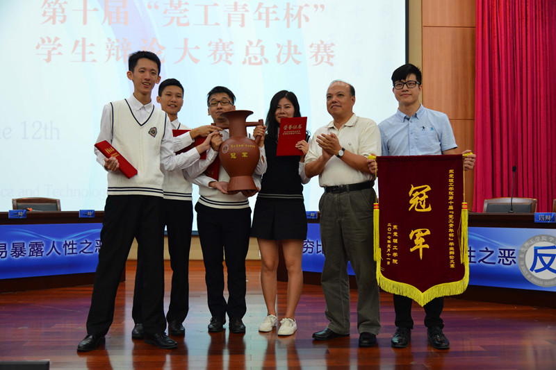 5月11日,我校第十届“莞工青年杯”学生辩论大赛决赛在松山湖校区学术会议中心举行,比赛吸引了近600名观众到场观看。校党委副书记吕琦元出席并为获得冠军的生态环境与建筑工程学院颁奖。冠军争夺赛中,生态环境与建筑工程学院对阵文学与传媒学院,双方围绕“贫穷与富贵何者更容易暴露人性之恶”的主题展开激烈辩论。双方在论证过程中结合了众多社会热点,碰撞出思想火花。最终,环建学院夺得冠军,文传学院获得亚军。文传学院廖丹丹获最佳辩手,环建学院刘智彬获最佳风采奖。在季军争夺赛中,电子工程与智能化学院对阵机械工程学院